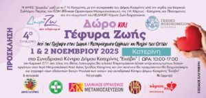 Διήμερο συνέδριο «Δώρο και Γέφυρα ζωής- από την πρόληψη στη Δωρεά/Μεταμόσχευση Οργάνων και Ιστών»