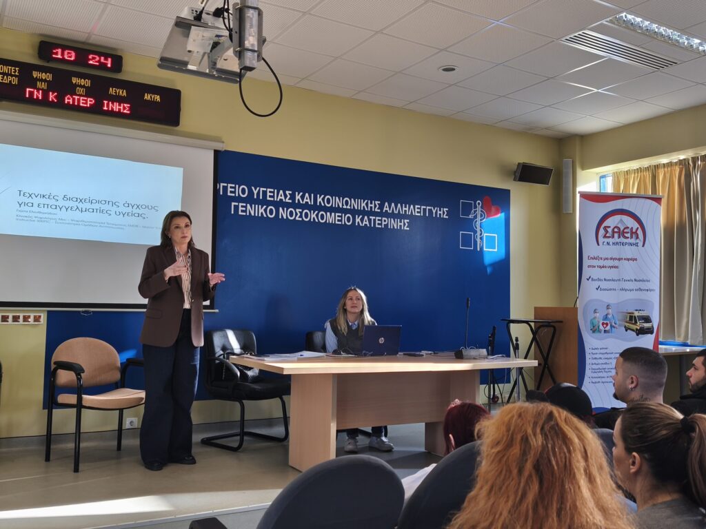 Διάλεξη με θέμα “Τεχνικές διαχείρισης άγχους για επαγγελματίες υγείας”, στους καταρτιζόμενους της ΣΑΕΚ Γ.Ν. Κατερίνης
